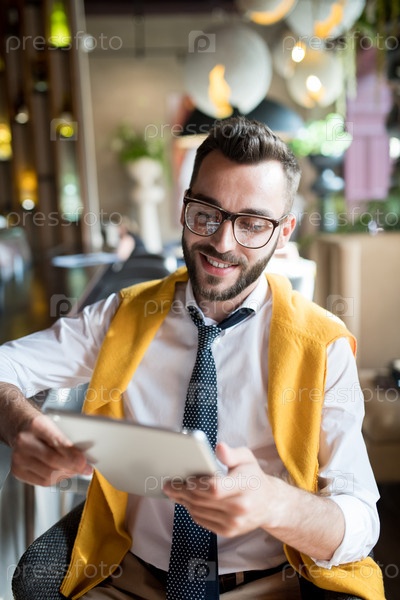 Бизнесмен читает онлайн современные новости