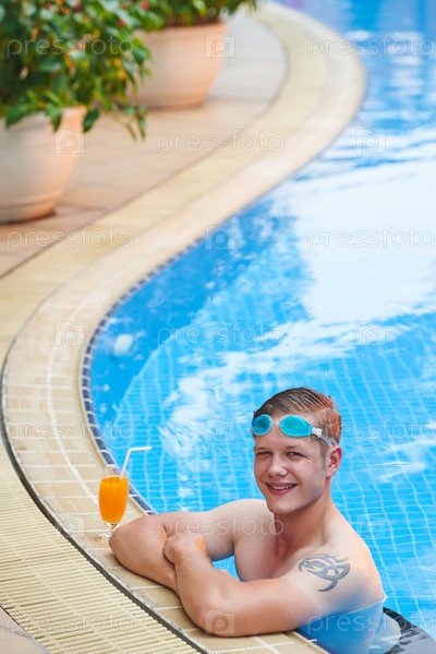 Мужчина отдыхает в бассейне