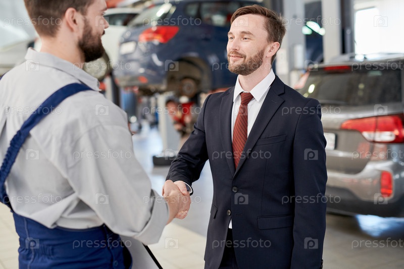 Бизнесмен пожимает руку механику