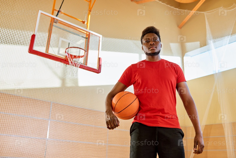 Черный спортсмен на баскетбольном корте