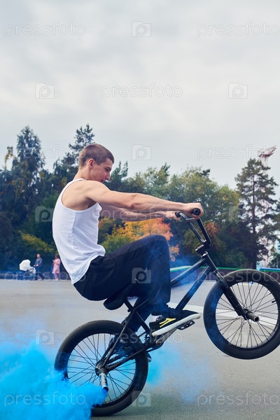 BMX-гонщик, выполняющий трюки