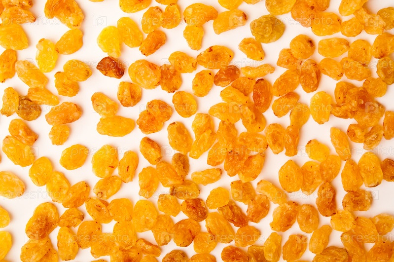 Желтый изюм на белом фоне