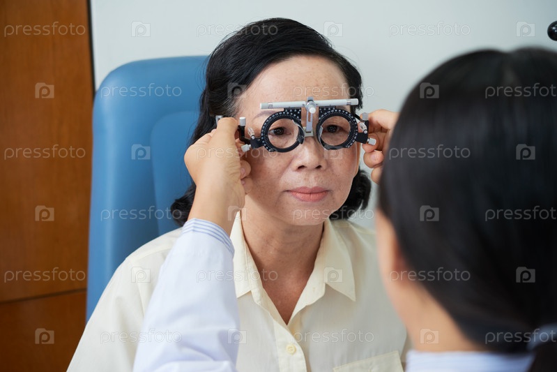 Урожайный врач тестирует видение азиатской женщины