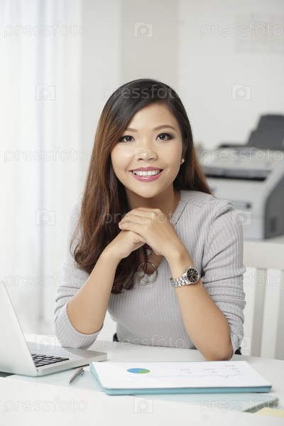 Красивая современная бизнесвуменка за столом