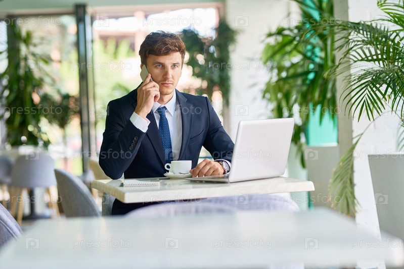 Современный бизнесмен, работающий в кафе