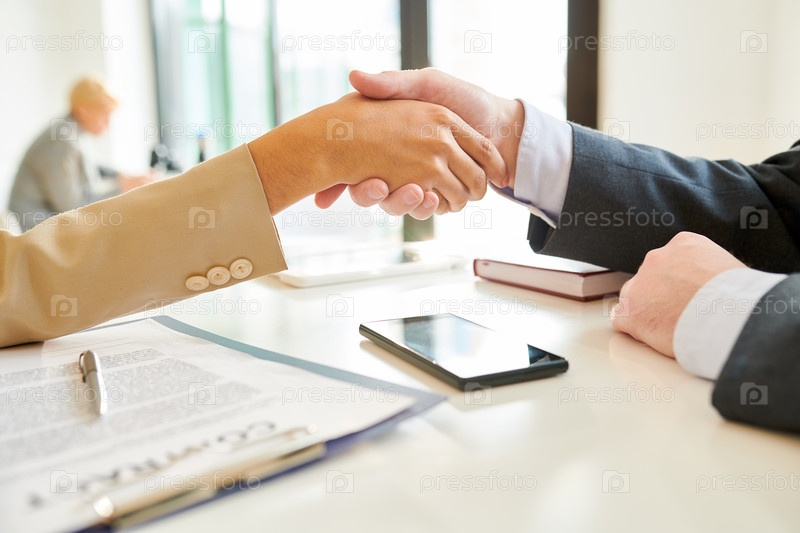 Деловая женщина, пожавшая руку партнеру вблизи