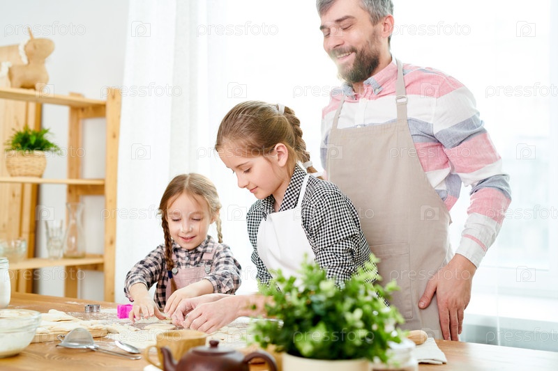 Любящая семья готовит вкусные печенье