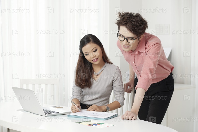 Молодые этнические коллеги смотрят газеты