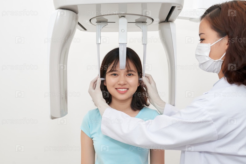 Молодая этническая девушка в стоматологическом кабинете делает рентген