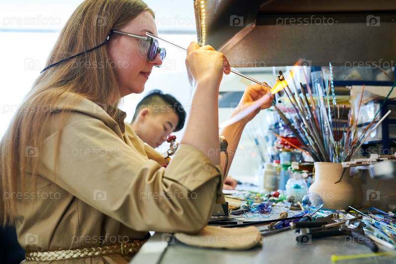 Художник, формирующий стекло в пламени