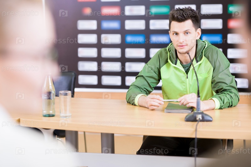 Известный спортсмен на пресс-конференции