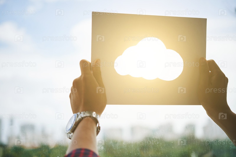 Урожайные руки, держащие облачные вырезки против солнечного света