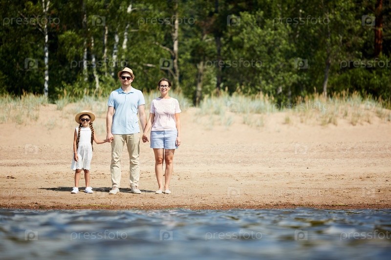 Семья позирует на пляже
