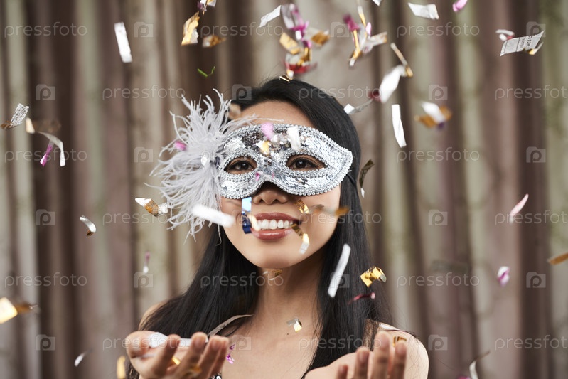 Женщина, стоящая под дождем конфетти