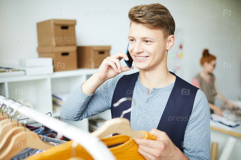 Мужчина принимает заказ по телефону