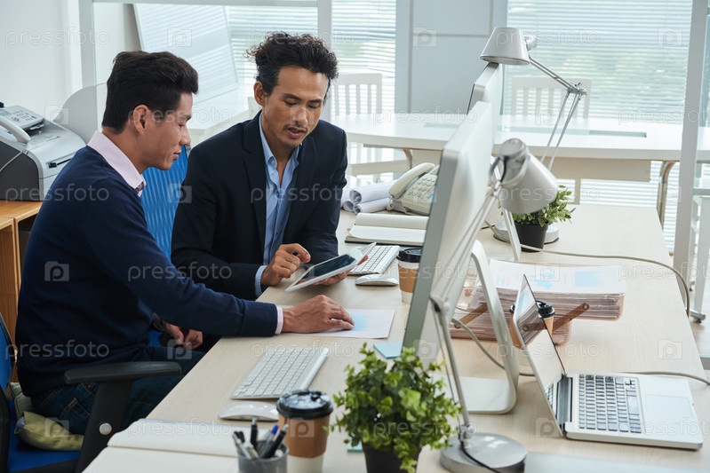 Бизнесмены, использующие планшет в офисе