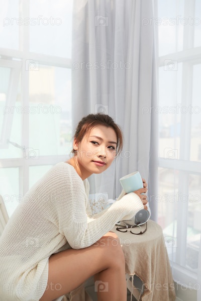 Девушка пьет кофе