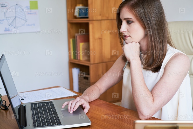 Молодая стильная женщина, работающая с ноутбуком