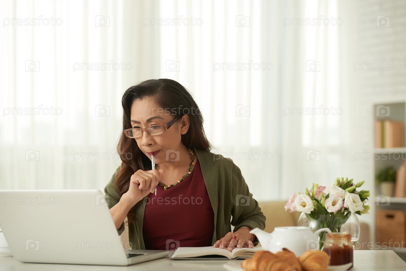 Старшая женщина изучает онлайн