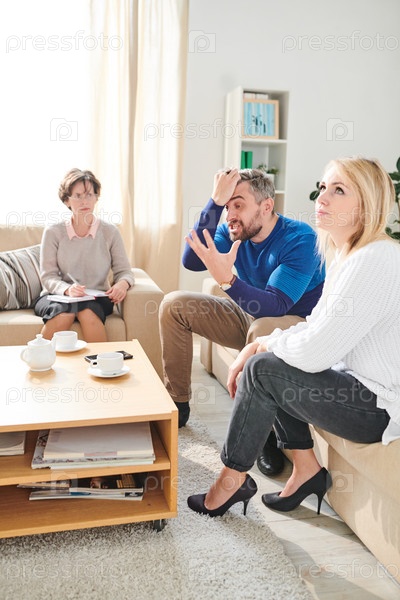 Разгневанный муж кричит во время сеанса терапии