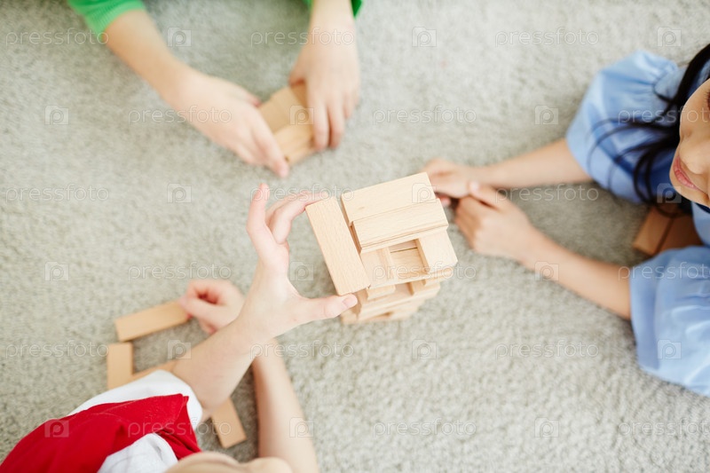 Дети играют в игру с деревянными блоками