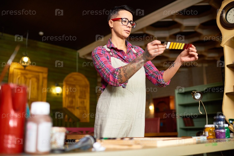 Татуированный художник в мастерской