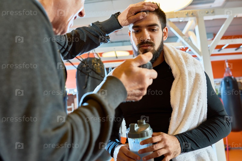 Мотивирующий спортсмен на тренировке тренер
