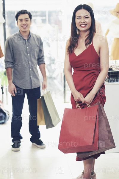 Молодая женщина наслаждается шопингом