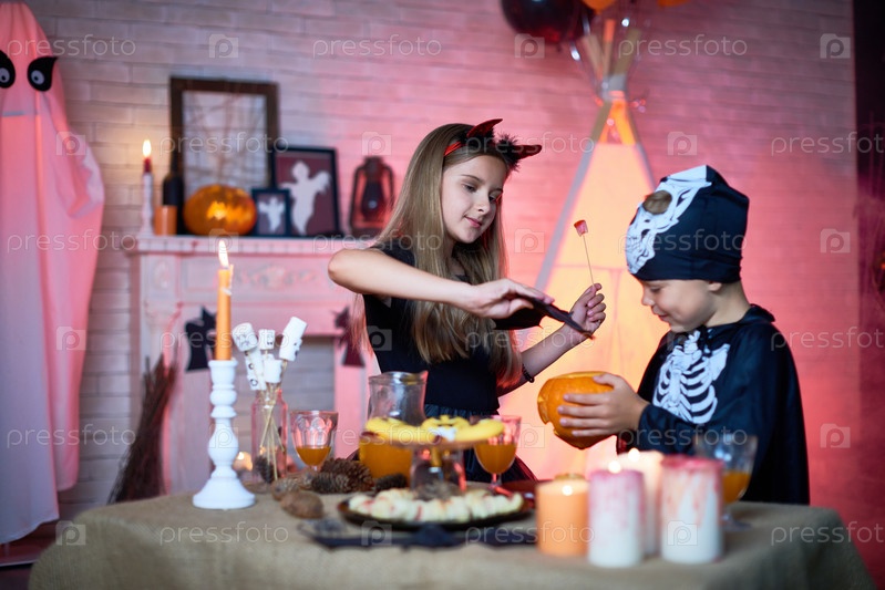 Дети играют во время вечеринки Хэллоуина