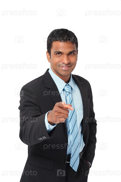 Уверенный предприниматель, указывающий на камеру