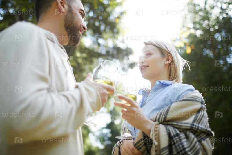 Любящая пара пьет вино