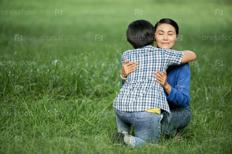 Мать обнимает сына