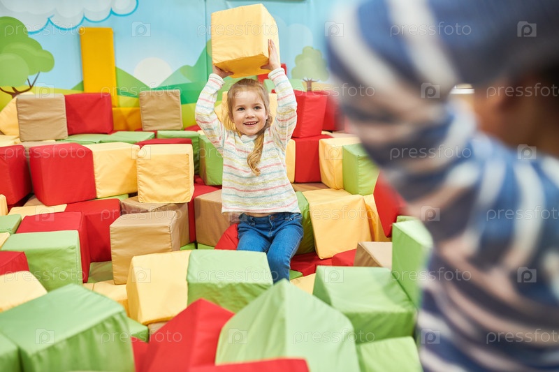 Два ребенка играют в пенной яме