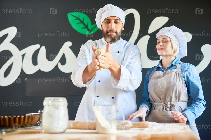 Повар и шеф-повар работают с тестом