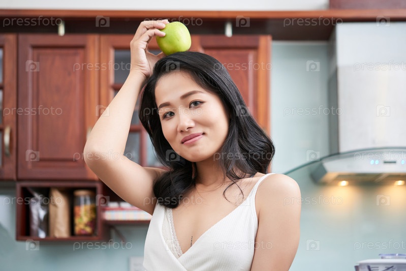 Этническая женщина с яблоком на голове
