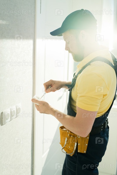Рабочий, делающий розетку