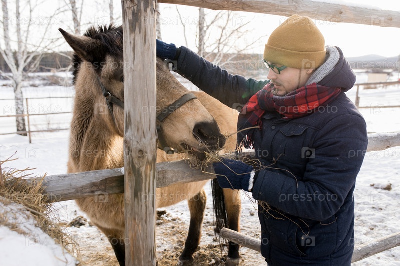 Кормление лошади фермером