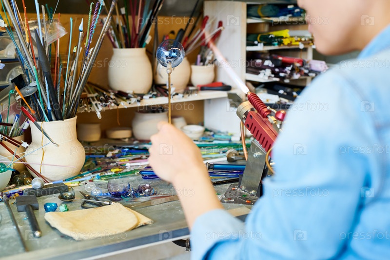 Непризнанный художник, делающий стеклянную сферу