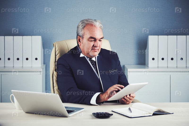 Бизнесмен с цифровым планшетом