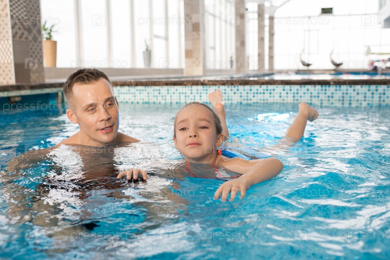 Обучение маленькой дочери плавать