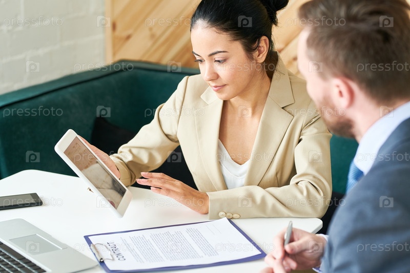 Деловая женщина, работающая с молодым партнером