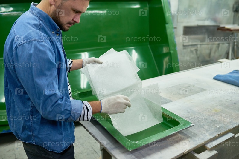 Человек, готовящий инструменты для покраски в гараже