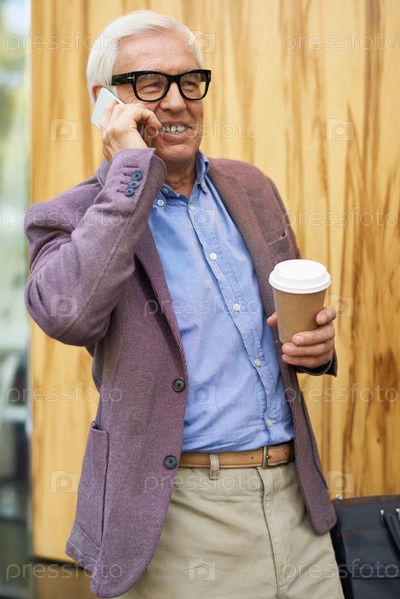 Современный старший мужчина, говорящий по телефону