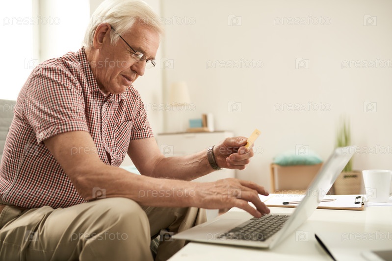 Старший мужчина покупает онлайн