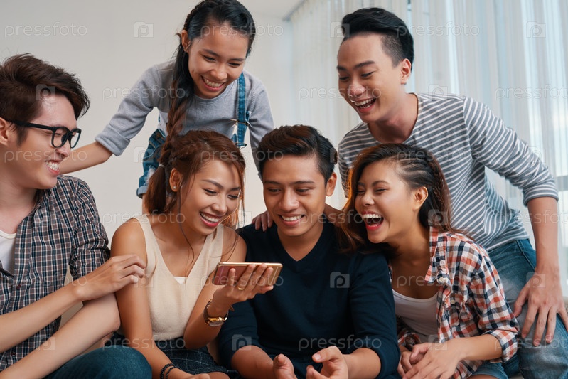 Молодые люди смотрят смешные видео