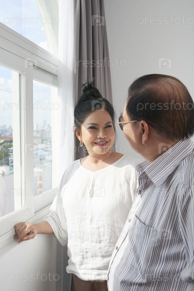 Пара обсуждает вид на город