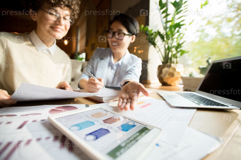Бизнес-леди анализируют схему на планшете