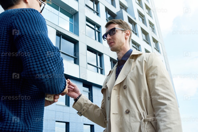 Успешный предприниматель разговаривает с коллегами на открытом воздухе