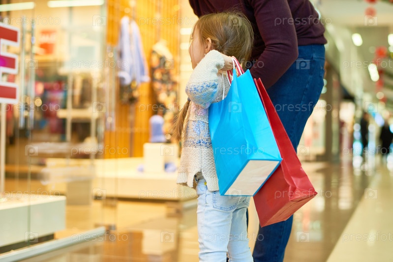 Милая девочка покупает с мамой