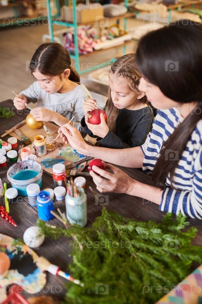 Дети рисуют рождественские украшения в классе искусства